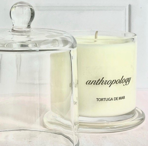 Vela de cera de soja aromatizada. Contenedor de vidrio con tapa.
